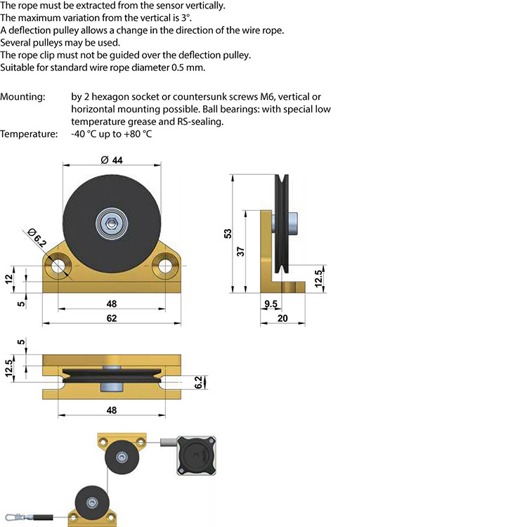 Foot: Anodised aluminium. Rope wheel: POM-C