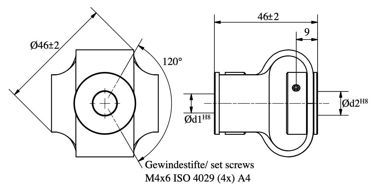 Accouplement flexible en elastomère : Ø d1 = 14 mm, Ø d2 = 14 mm