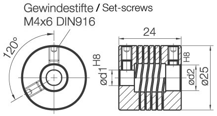 Accouplements hélicoïdaux : Ø d1 = 8 mm, Ø d2 = 8 mm